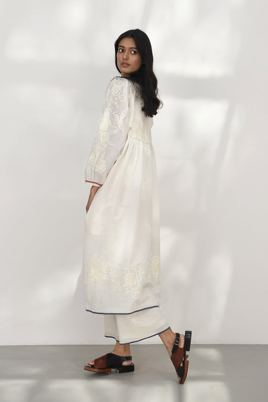CAROLINE EMBROIDERED TUNIC SET WITH SCALLOPED SCARF