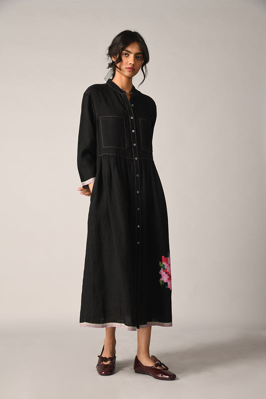 OTILLIE EMBROIDERED OVERLAY SHIRT DRESS