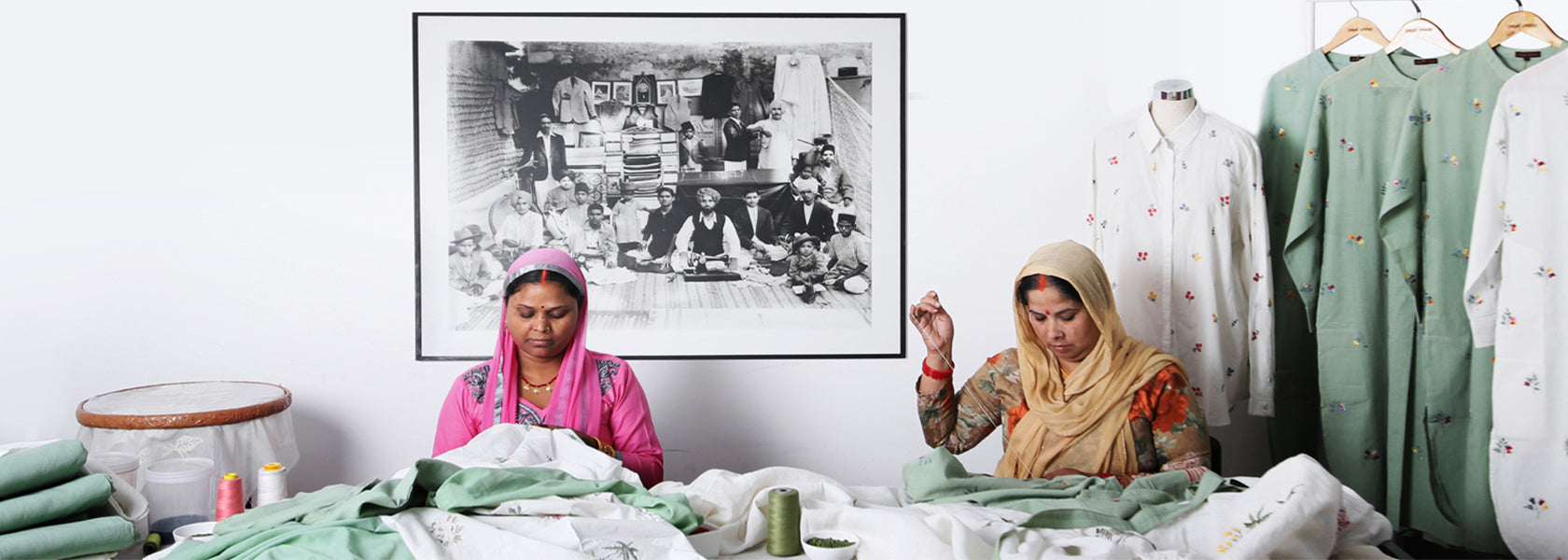 Every garment passes through many hands — spun, woven, stitched, and embroidered by artisans who bring their skill and soul into each piece.